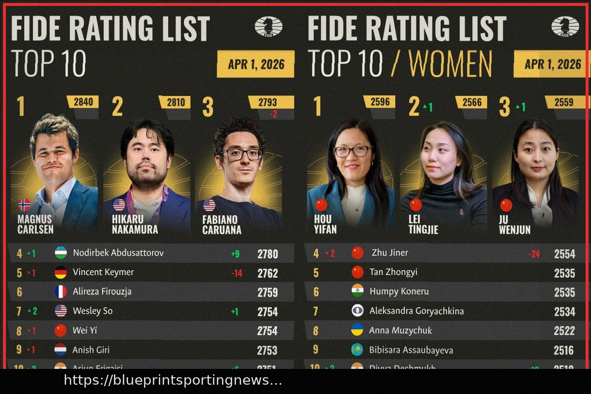 In the women’s category, Hou Yifan solidifies her standing as the highest-rated female chess player worldwide. Meanwhile, reigning World Champion Gukesh Dommaraju maintains his dominant position as the top player under the age of 20.